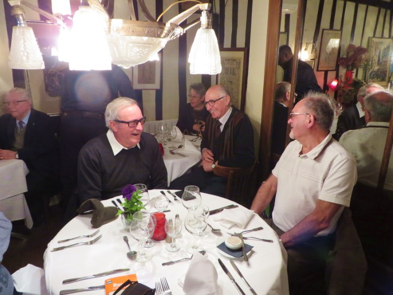 Rendez-vous était pris sur la place du vieux marché, au restaurant "Les Maraîchers", pour un apéritif normand suivi d’un repas où comme d’habitude il a été fait une large part aux commentaires sur les activités passées, ainsi qu’aux souvenirs et comparaisons concernant les écoles du Dourdy et le C.I.N.de Brest. Malgré l’intérêt porté aux conversations, chacun a fait honneur à la cuisine savoureuse du chef.