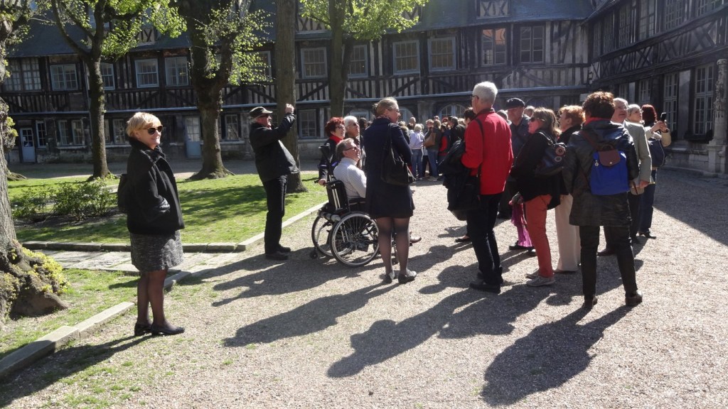 Un court trajet dans une rue qui nous transporte plusieurs siècles en arrière, nous retrouvons notre guide pour une visite du vieux Rouen, en commençant bien sûr par la cathédrale. La visite se poursuit par le quartier Saint Maclou aux rues médiévales, puis la fameuse rue « du Gros Horloge » que l’on peut voir sur toutes les cartes postales des principaux lieux d’intérêt de la ville.
