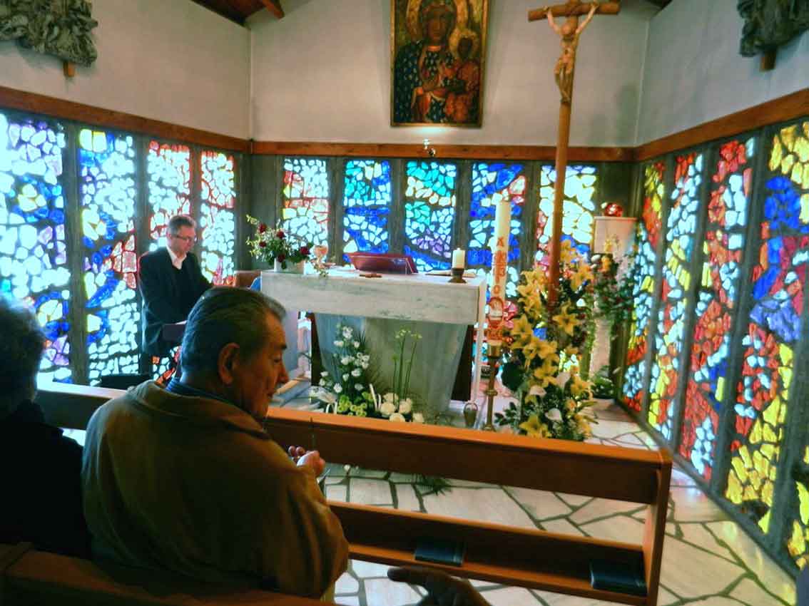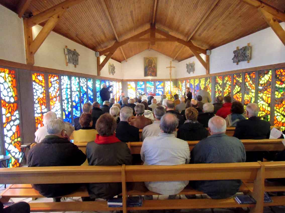 Dimanche matin, en souvenir de notre ami Yves Buannic, tout le monde a tenu à assister à la messe dans la magnifique petite chapelle Saint-Eugène de Mazenod attenante au centre Stella Maris. Elle fut célébrée par l'aumônier de cette chapelle, le père Léon Brzezina, prêtre polonais, et magnifiquement accompagnée par Monsieur Roman Nawojski, organiste également polonais. Tous nos amis disparus cette année, et en particulier Yves Buannic, étaient présents dans chacune de nos mémoires.