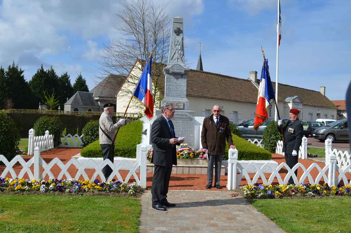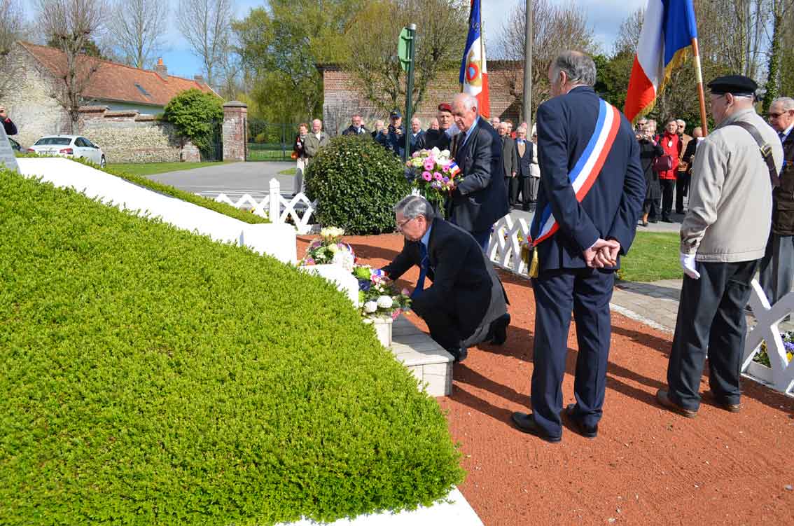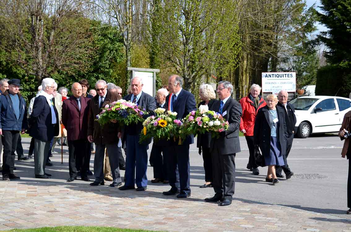 Tout le monde se rendit ensuite au monument aux morts de la ville de Cucq, rejoindre les personnalités municipales et les représentants des Déportés, pour s'y recueillir et y déposer une gerbe. C'est notre Coordinateur Maurice Mention qui déposa celle de l'Amicale des Pupilles Mousses et qui prononça une allocution en mémoire de nos disparus.