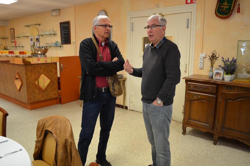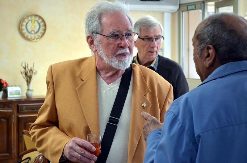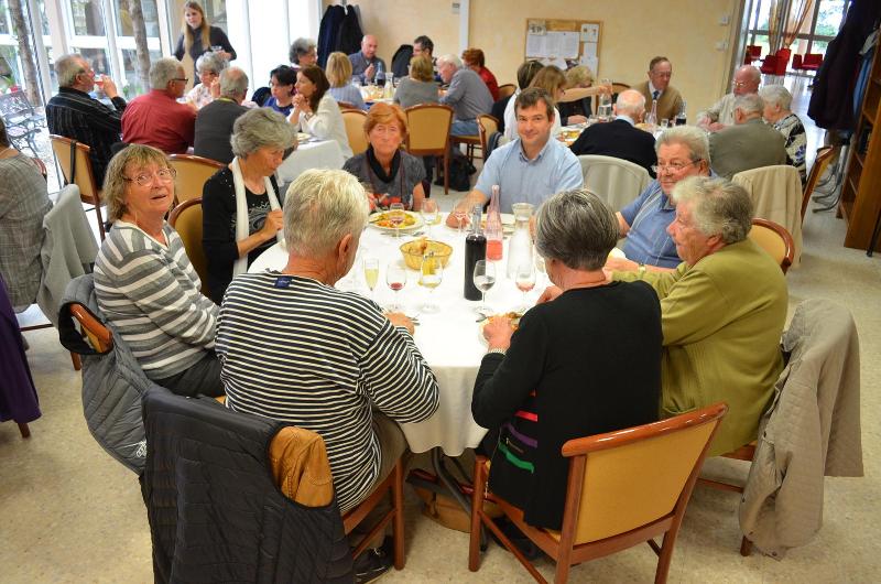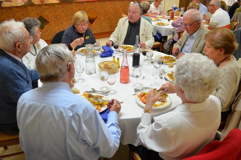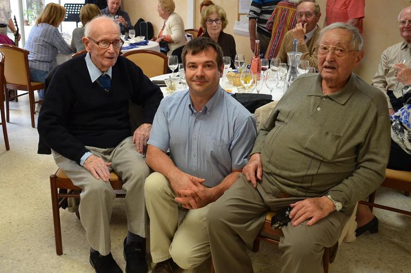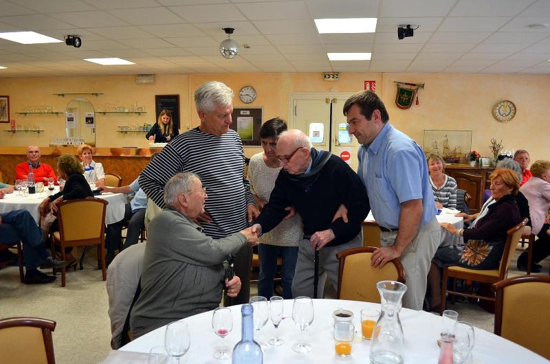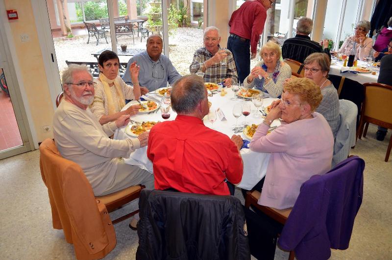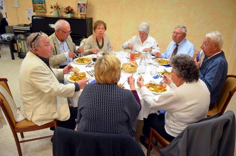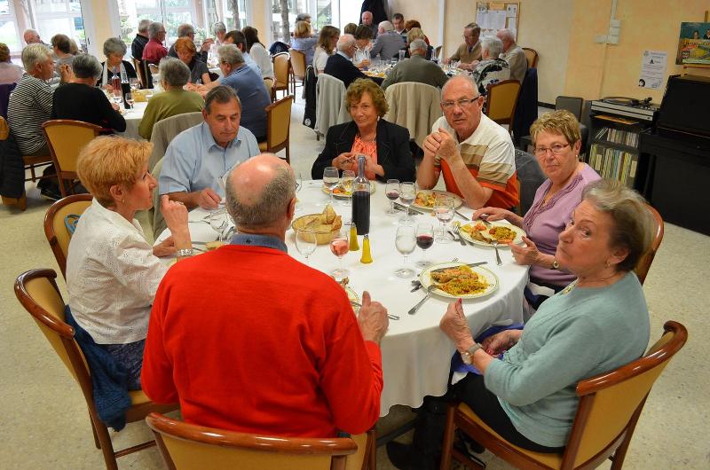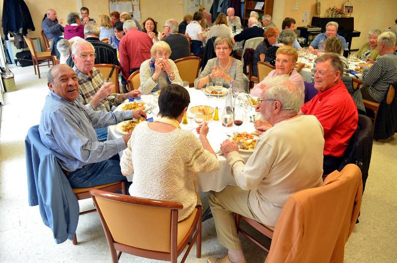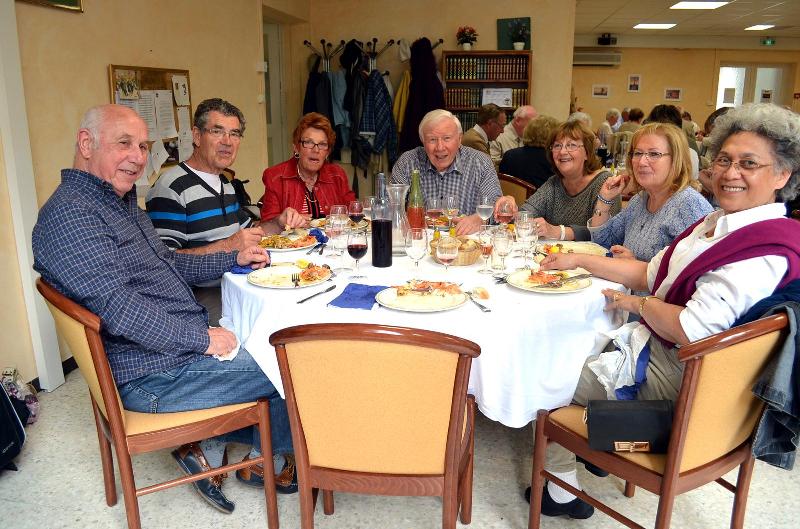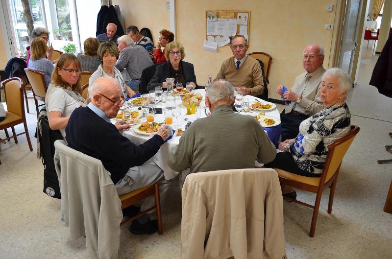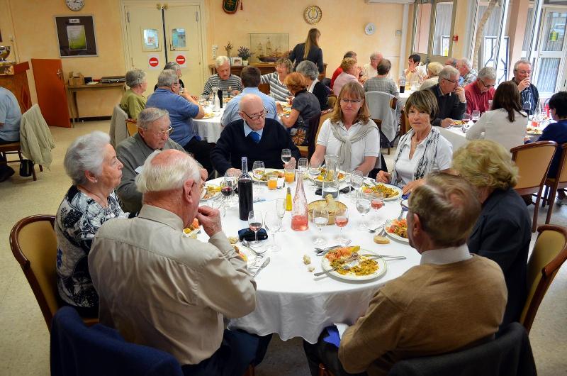 Faute de pouvoir bénéficier du magnifique cadre extérieur de la résidence de la Médaille Militaire, à Hyères, c'est à l'intérieur que la paella fut servie à la cinquantaire de membres de notre région provençale qui avaient répondu présents à notre invitation. Et parmi eux, comme à l'accoutumée, notre cadet, Didier Galipot, heureux de retrouver notre ancien, toujours fidèle au poste ! Mais celui-ci a été rejoint cette fois-ci par un autre ancien, Gérard Dutriez, qui participait à ce repas en tant qu'invité, mais allait aussitôt décider d'adhérer à notre amicale.