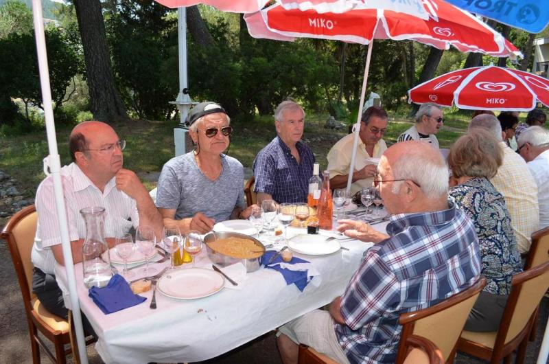 Le beau temps était de la partie, malgré un peu de vent ; la convivialité et la joie de se retrouver l'étaient aussi ! Pour le premier ce fut une chance, car la météo était un peu capricieuse en cette fin de printemps ; mais les secondes ne doivent rien au hasard, car - nul de pourrait prétendre le contraire sans médire - elles sont toujours de mise en région PACA-Corse, et tous les partipants à nos activités peuvent en témoigner, des plus jeunes aux plus anciens ... parmi lesquels notre aîné, Laurent Moutton. Il était bien évidemment des nôtres, comme à l'accoutumée, et sa fille Évelyne nous confia, lors d'une émouvante déclaration, qu'il ne manquerait pour rien au monde ces moments de retrouvailles qui lui procuraient un très grand sentiment de bonheur ; ce dont elle remercia chaleureusement non seulement les personnes présentes, mais aussi l'Amicale des Pupilles-Mouses dans son ensemble.