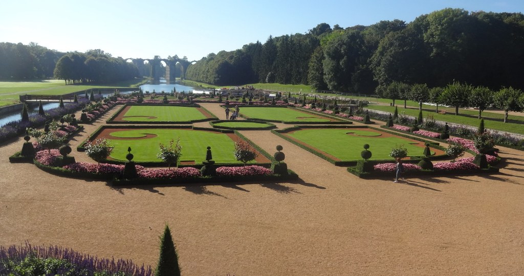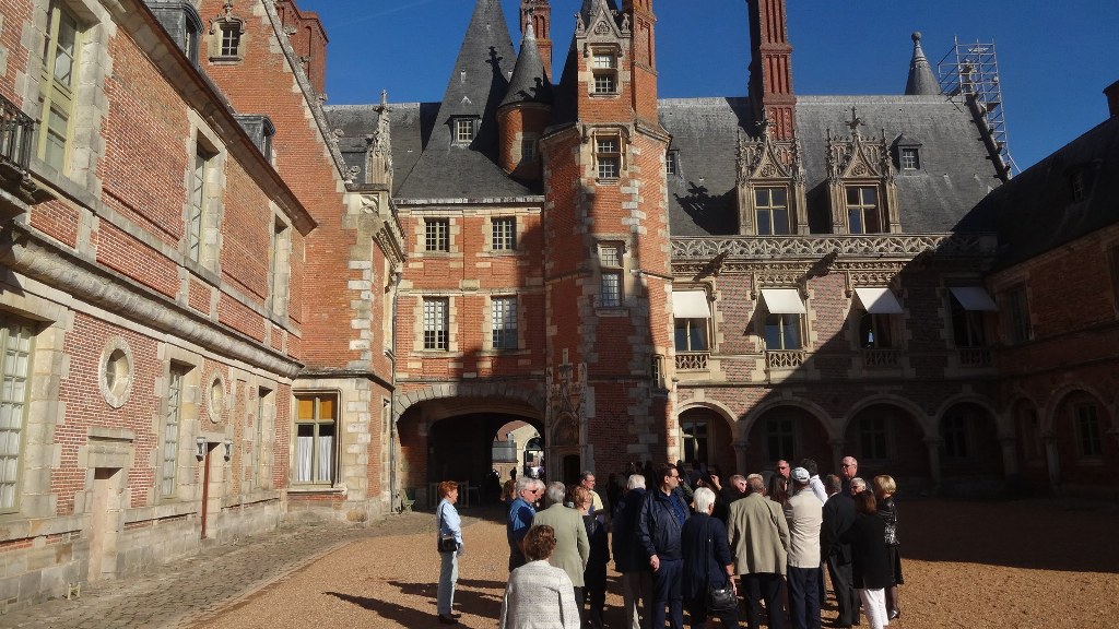 Tous les participants se sont retrouvés à l’entrée du parc du château de Maintenon, qui fut la résidence de Françoise d’Aubigné, gouvernante des enfants de Louis XIV et de Madame de Montespan, avant de devenir Madame de Maintenon, maîtresse puis épouse morganatique de Louis XIV. Ce château qui affiche plusieurs styles de construction, comporte un ensemble mobilier très complet et bien restauré. Les galeries de portraits permettent de suivre l’évolution des différents personnages qui se sont succédés au fil des ans dans cette demeure.