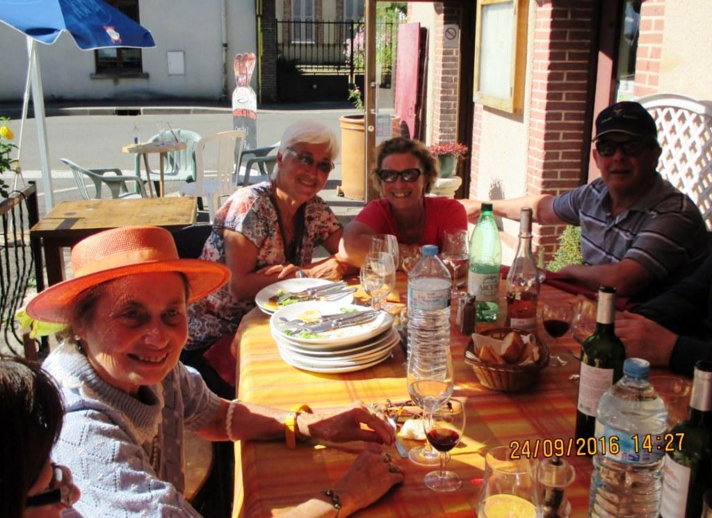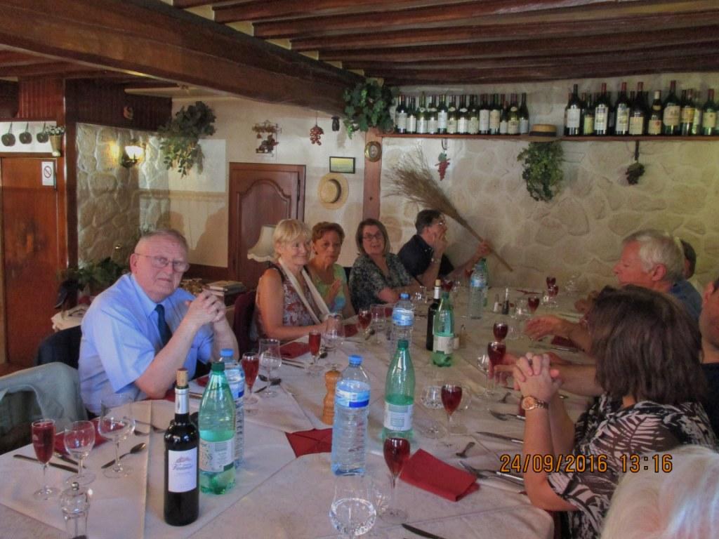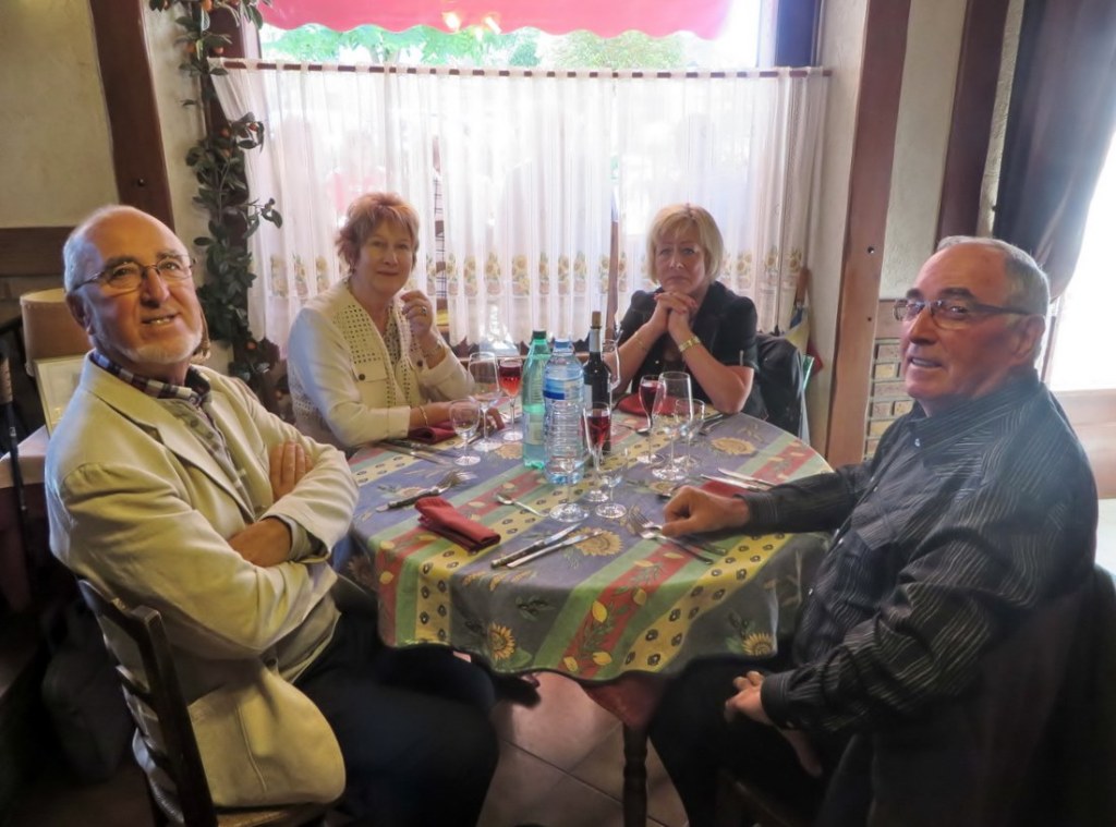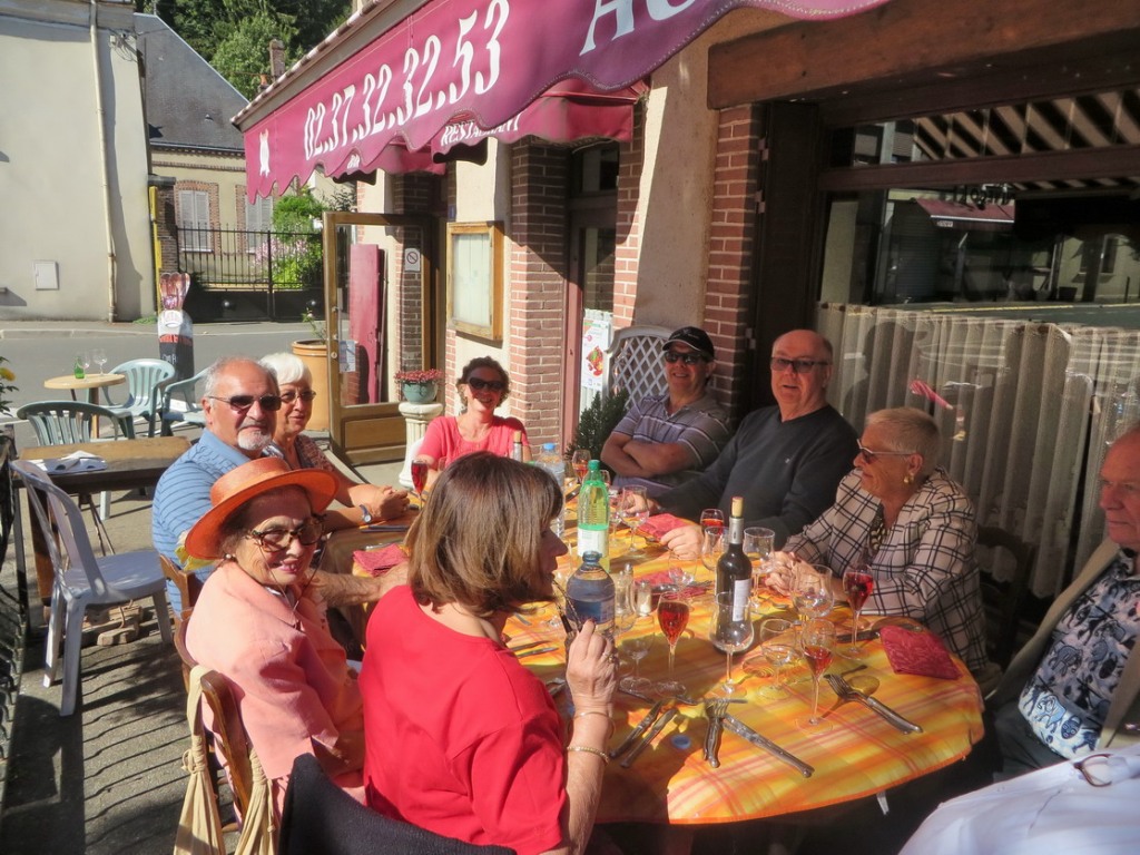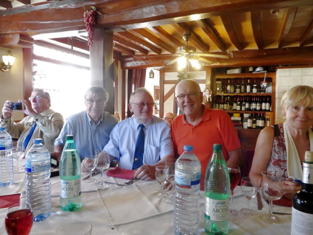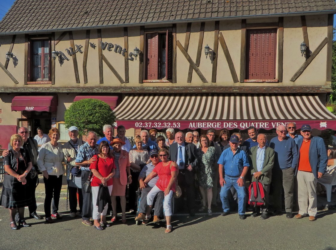 A l’issue de cette visite, nous avons repris la route sur quelques kilomètres pour rallier l’auberge des 4 vents où nous attendaient Madame et Monsieur Le Roux, propriétaires, pour un pot de bienvenue. Le repas fut de qualité pour les deux menus proposés et l’ambiance, comme d’habitude, fut au beau fixe. Les nouveaux adhérents furent tout de suite à l’aise, se retrouvant en pays connu par les échanges de souvenirs.