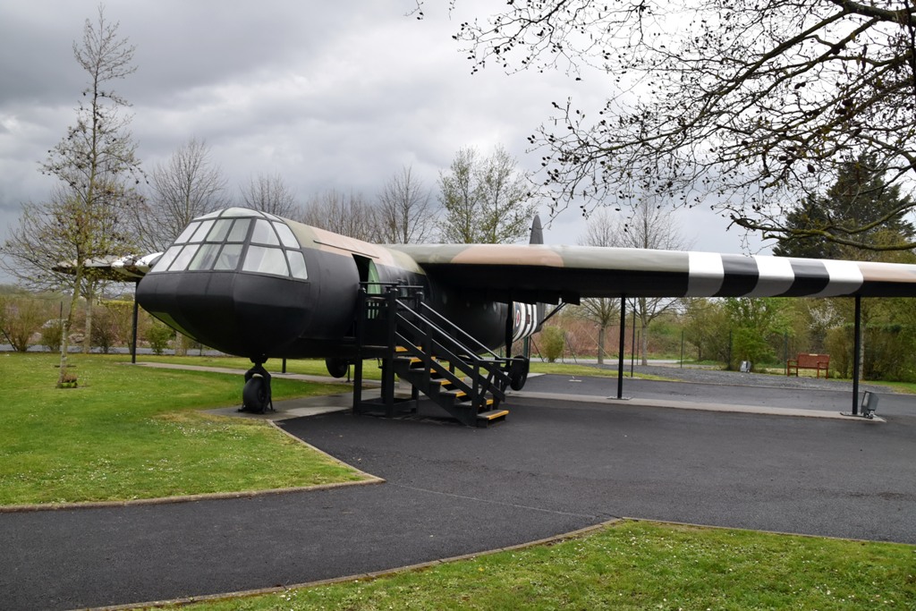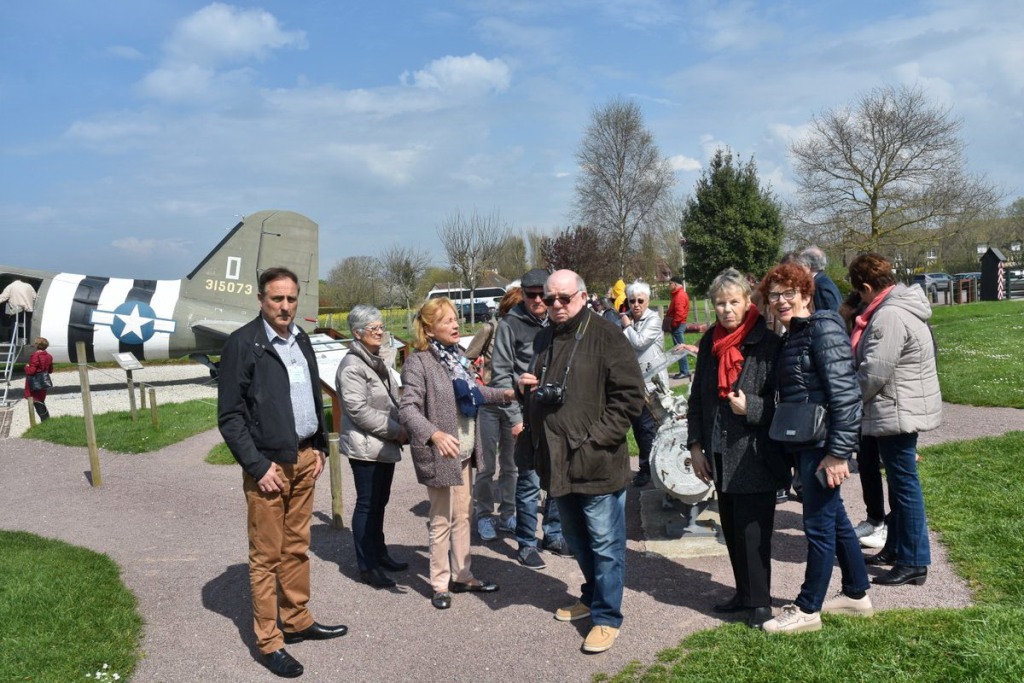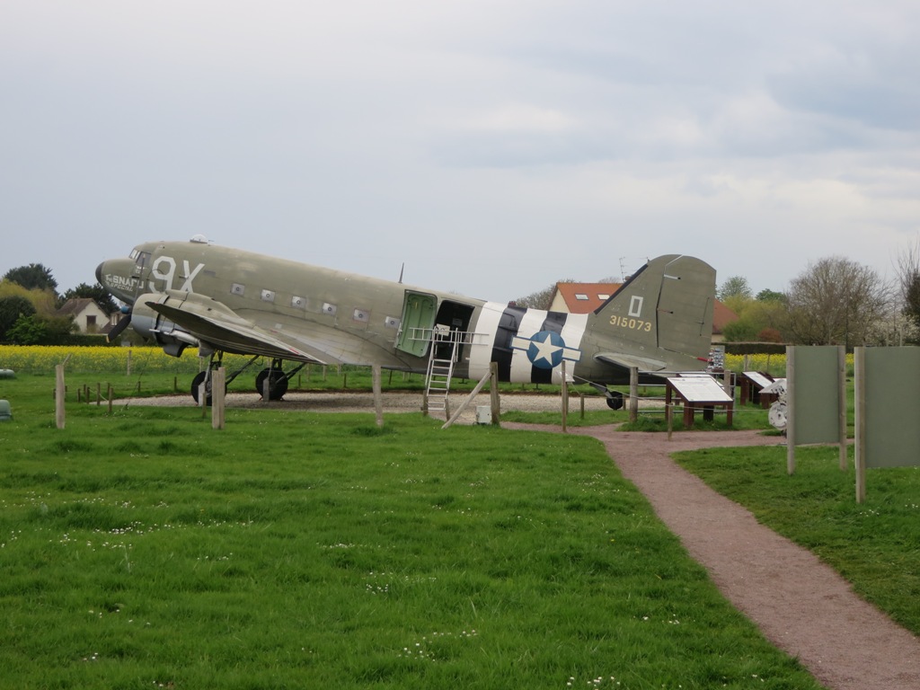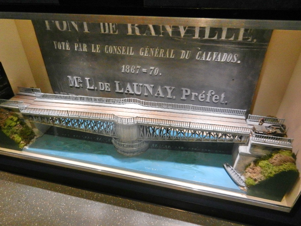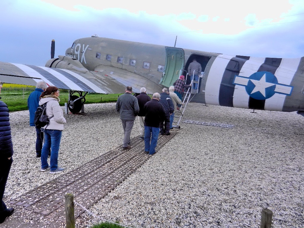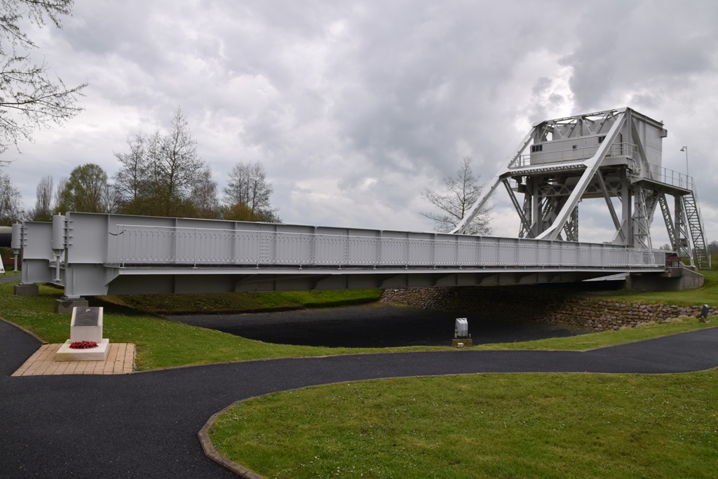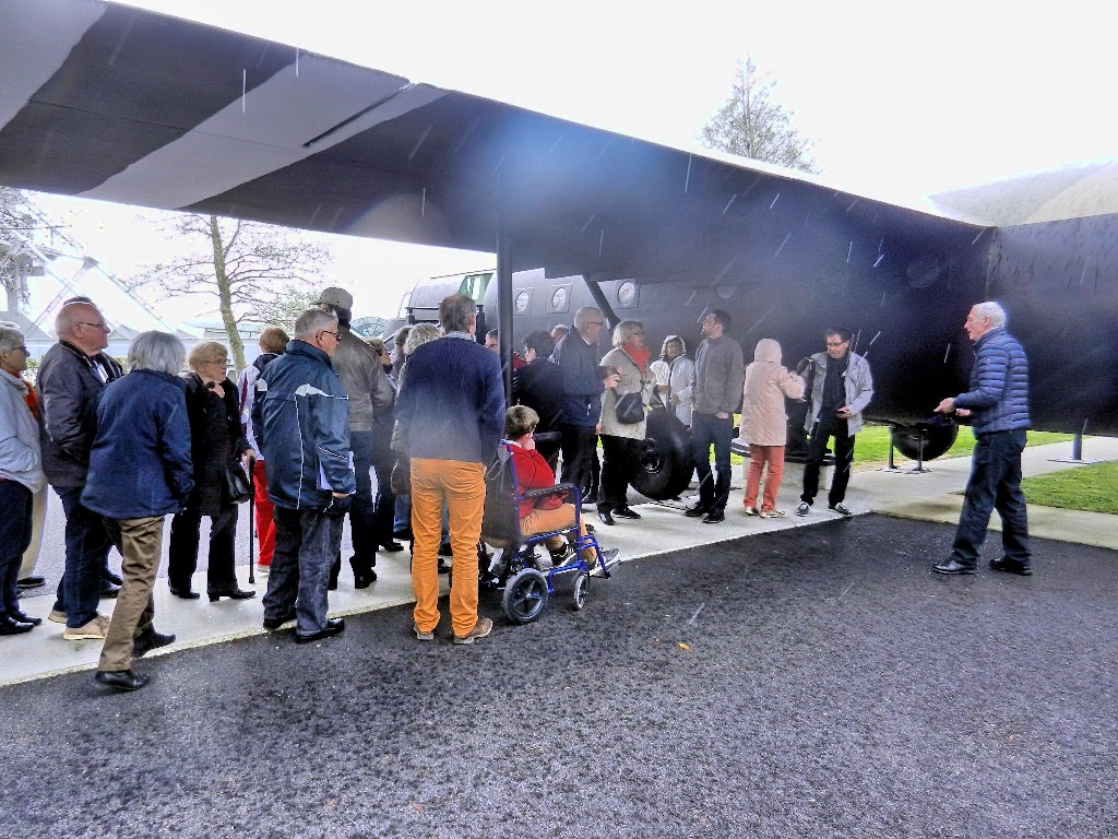 L’après-midi, en deux groupes, tout le monde part en cars, alternativement vers la batterie de Merville, lieu stratégique de l’armée allemande pour la défense des plages normandes, et le musée de Ranville près du Pégasus bridge. Une averse nous oblige à nous mettre à l’abri sous l’aile d’un planeur Horsa. Le pont d’origine, premier objectif du débarquement, est exposé sur le terrain du musée ; il porte toujours les traces des combats.