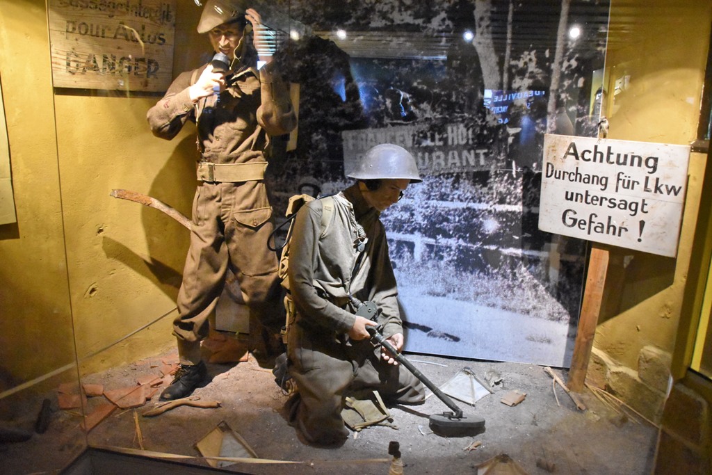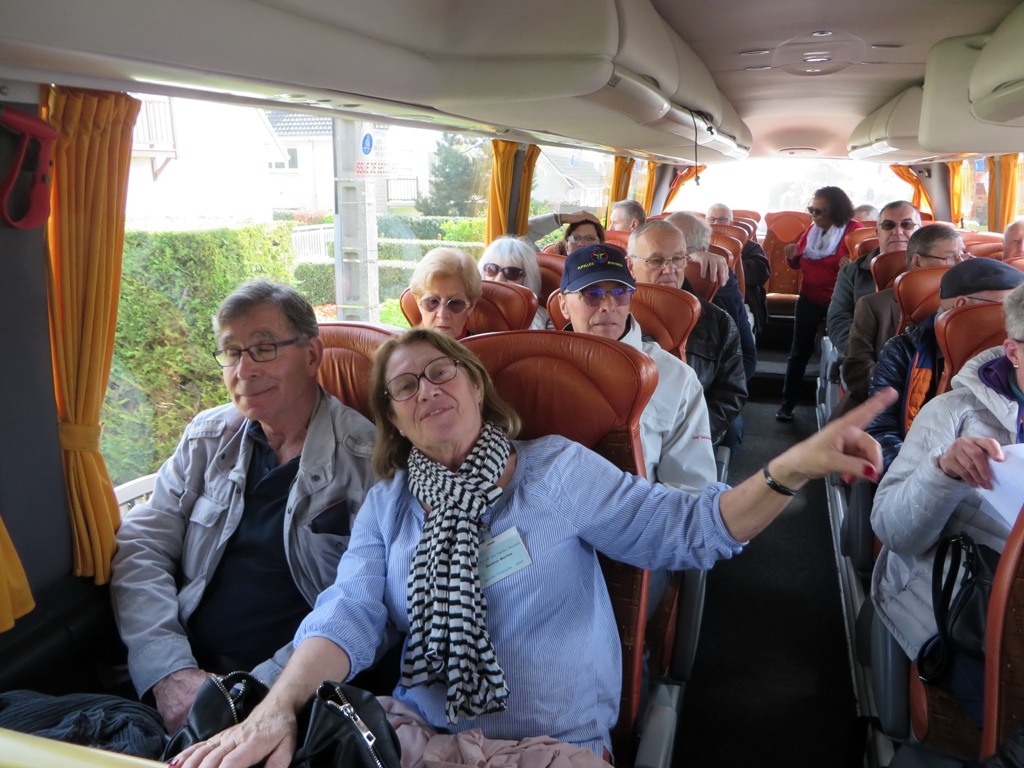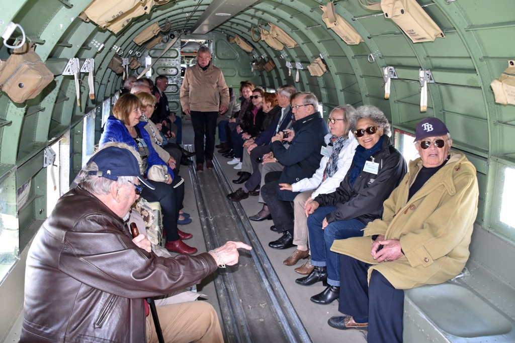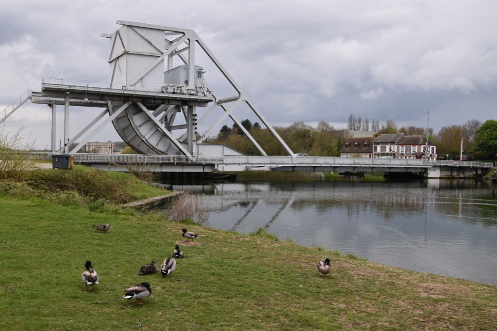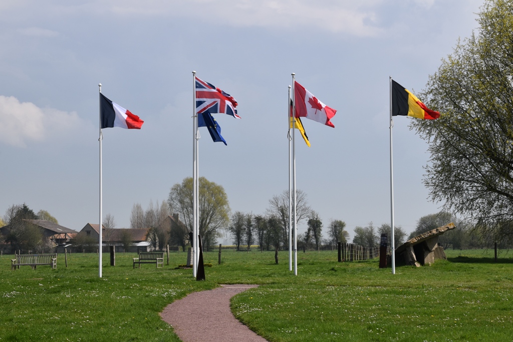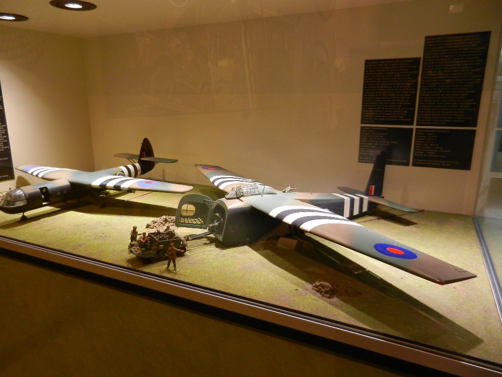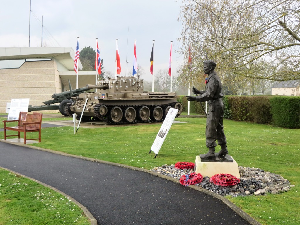 L’après-midi, en deux groupes, tout le monde part en cars, alternativement vers la batterie de Merville, lieu stratégique de l’armée allemande pour la défense des plages normandes, et le musée de Ranville près du Pégasus bridge. Une averse nous oblige à nous mettre à l’abri sous l’aile d’un planeur Horsa. Le pont d’origine, premier objectif du débarquement, est exposé sur le terrain du musée ; il porte toujours les traces des combats.