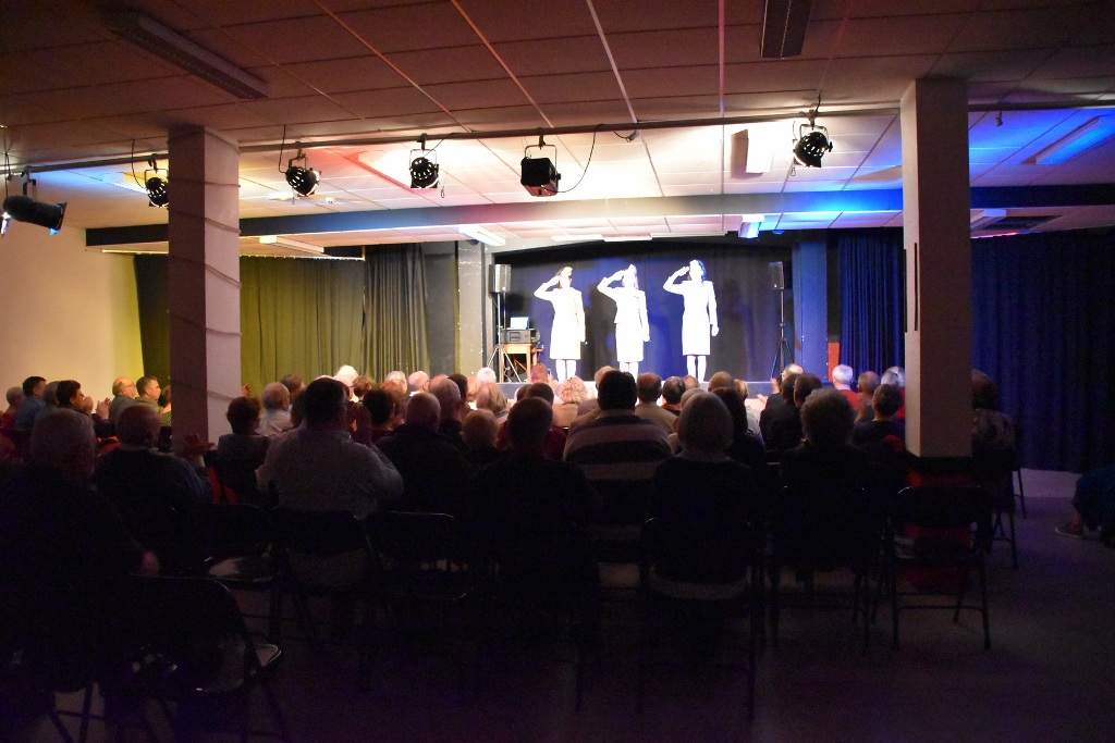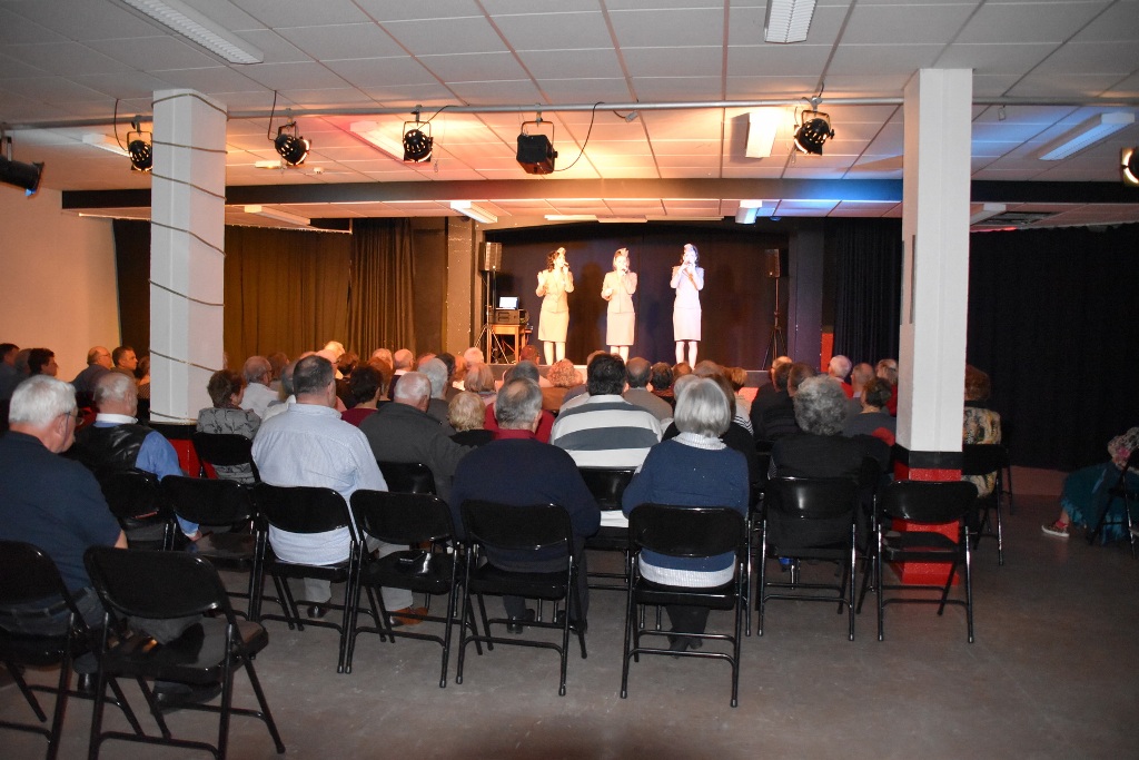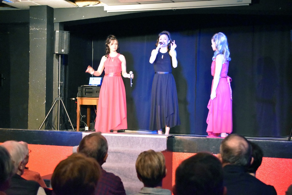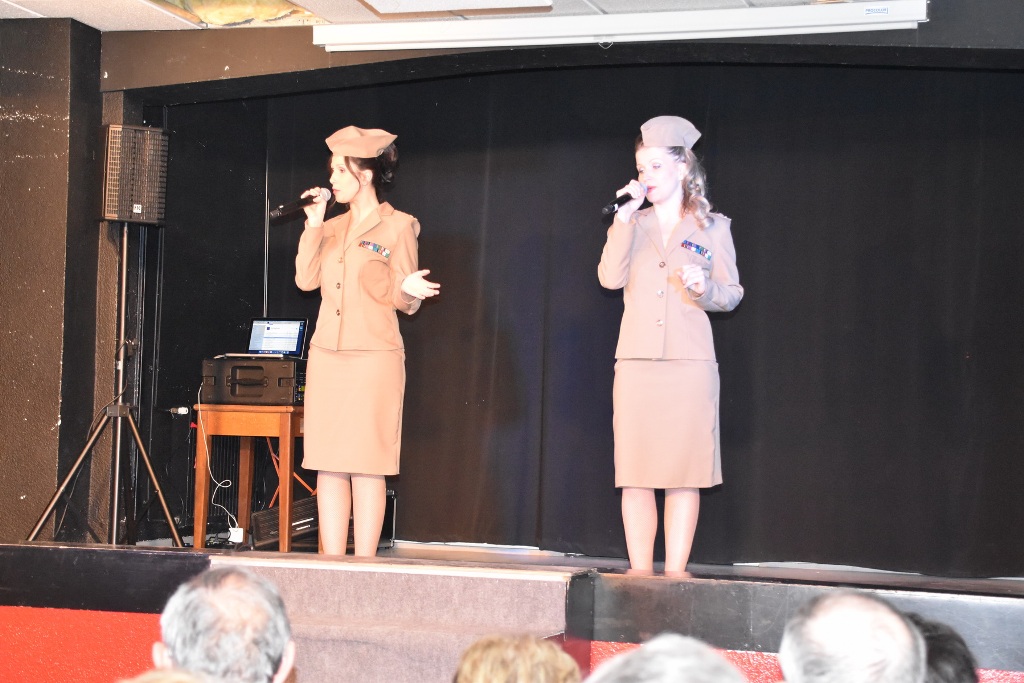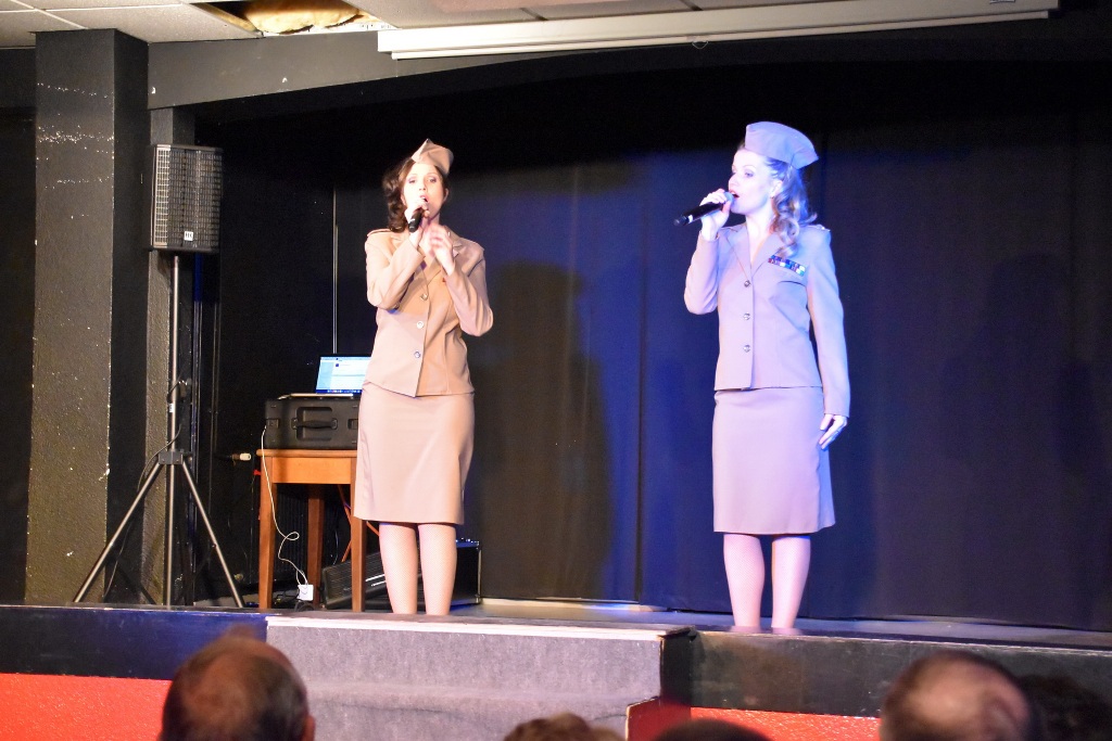 La soirée se prolonge avec une animation réalisée par un groupe de trois jeunes et belles chanteuses qui interprètent des chants de 1942 destinés aux soldats américains sur le front.