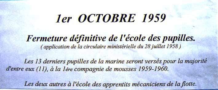 La grande majorité des Pupilles a rejoint l'Ecole des Mousses ou l'Ecole des Apprentis Mécaniciens de la Flotte, puis nos équipages où ils furent fort appréciés.